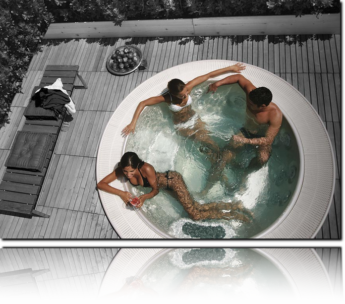 Spa rond spa carre version encastrable ou portable 5 places ou 6 places possiblite installation interieur ou exterieur liberte des formes choix des couleurs grande qualite des finitions massages air + eau